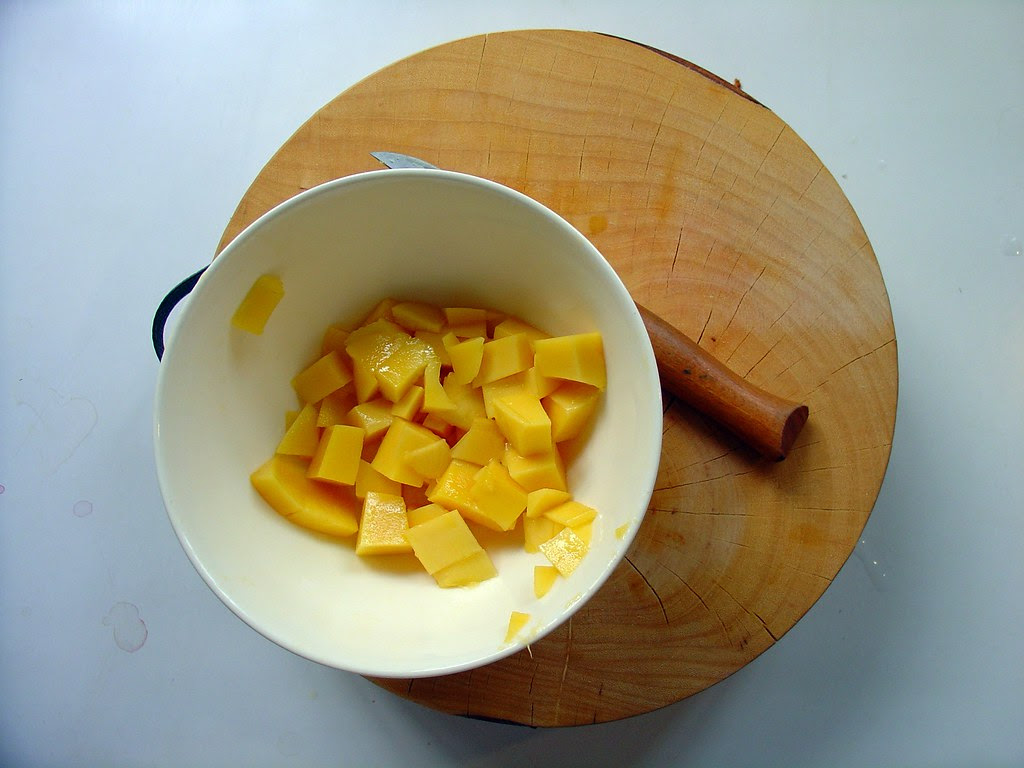 Mangoes are a juicy, slippery fruit with leathery skin, and getting that skin off without turning your mango into an orange pulp can be a challenge. My favorite way to peal a mango is to: 1) find a tree full of ripe mangoes, 2) climb it, 3) pick a ripe mango, 4) bite it at very tip of the small end, but not all the way through, 5) peel skin off in strips with your teeth, 6) devour mango, 7) suck on seed, 8) descend tree, 9) wash face and hands. That technique may not be ideally suited to all circumstances, so you can use this trick I learned in the town of Esperanza in the Dominican Republic instead.